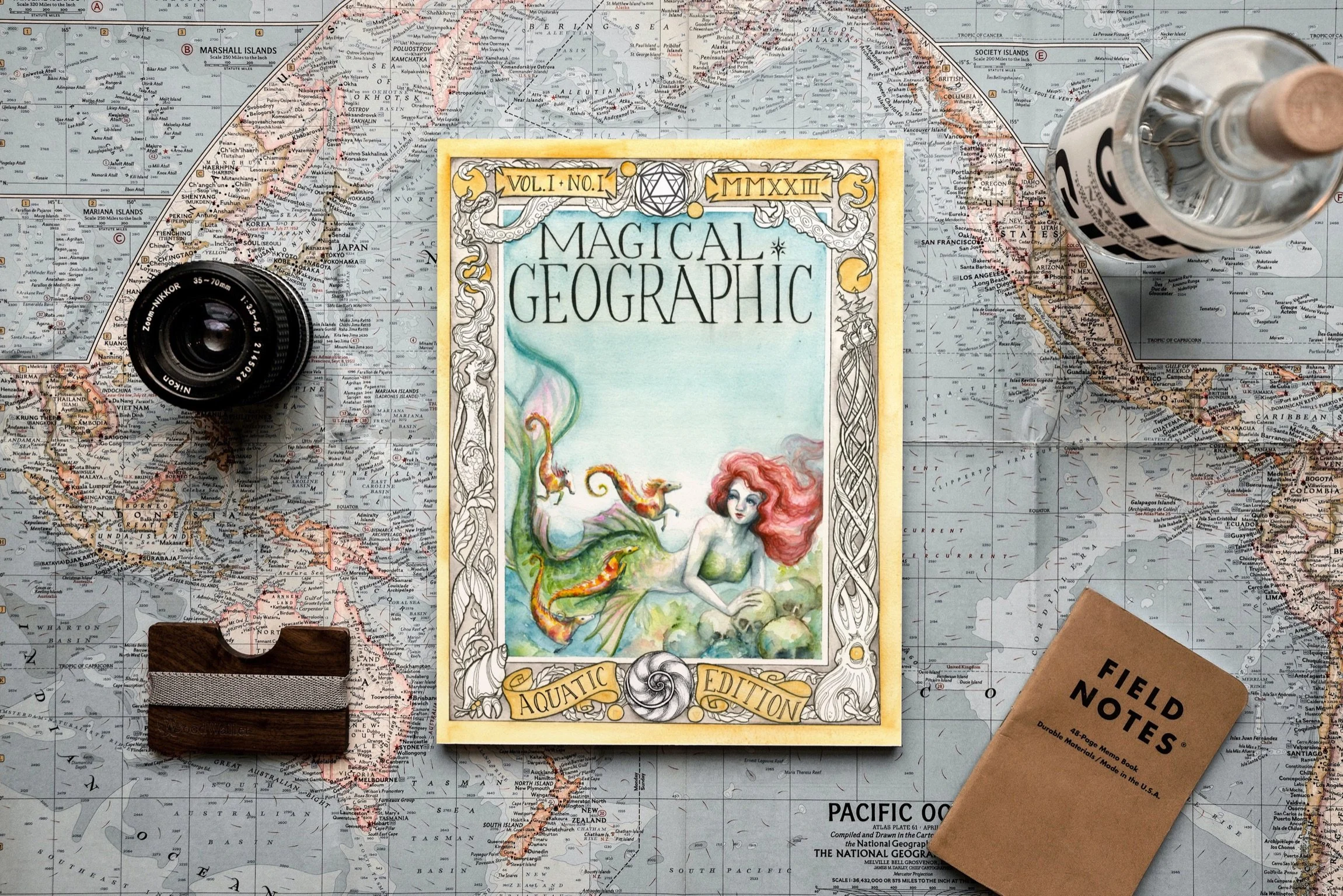 This first edition of Magical Geographic is illustrated with over 150 traditional watercolor paintings of mermaids, dragons, Japanese pocket monsters, unicorns, and a host of other mythological animals drawn from literature across the planet. The book is 8.5x11 inches and is available as a softcover edition, as an expanded digital edition, and as a deluxe limited edition hardbound hand numbered and signed by the creator. At double the page count of previous works, it is our largest book yet.